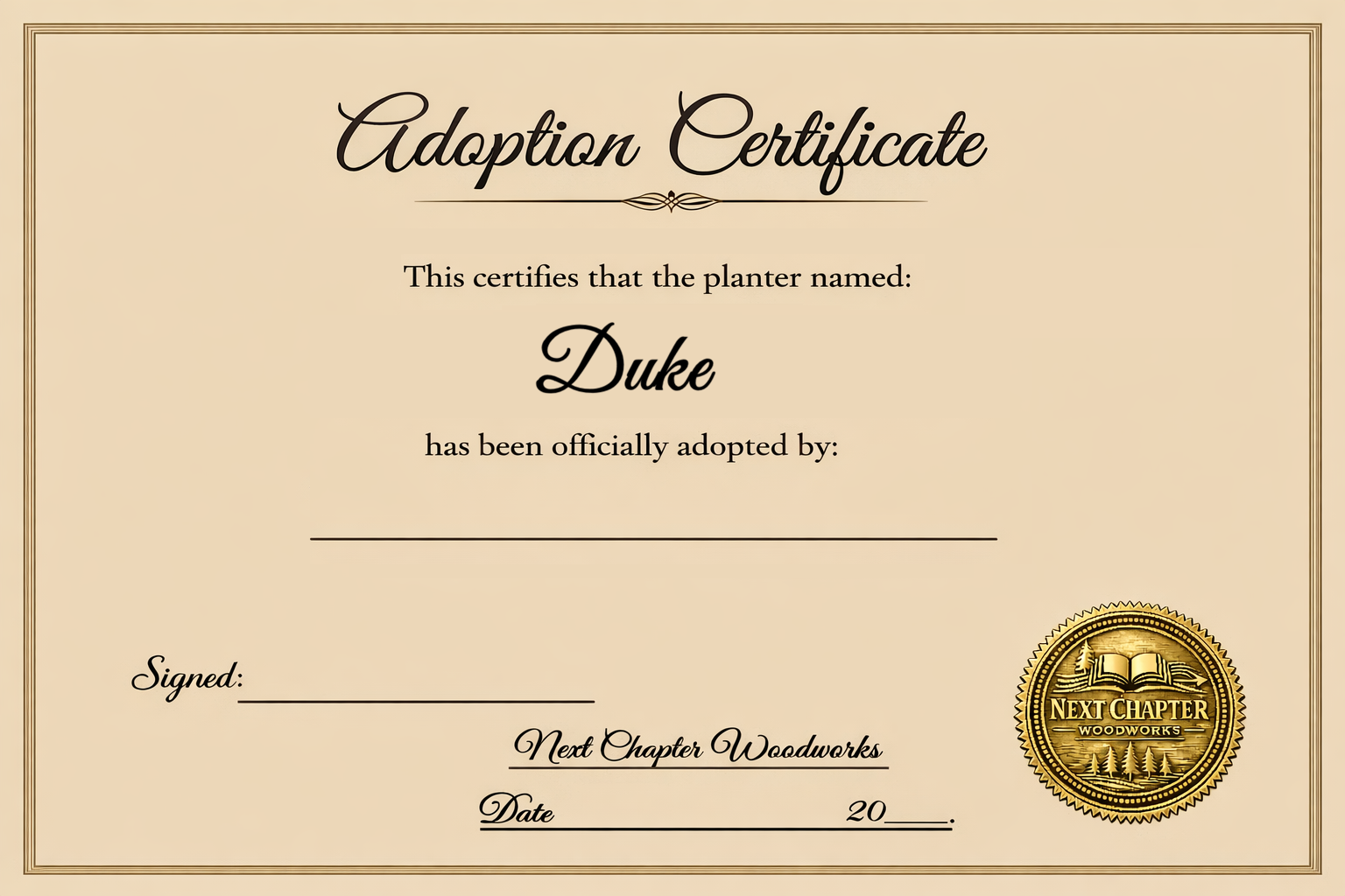 Duke may be short in height, but he’s big in personality! This curious little farm pup loves sniffing around the garden and proudly carries flowers, herbs, or greenery on his back. Loyal, playful, and always ready for adventure, Duke is the perfect helper for brightening up any porch, windowsill, or garden space.